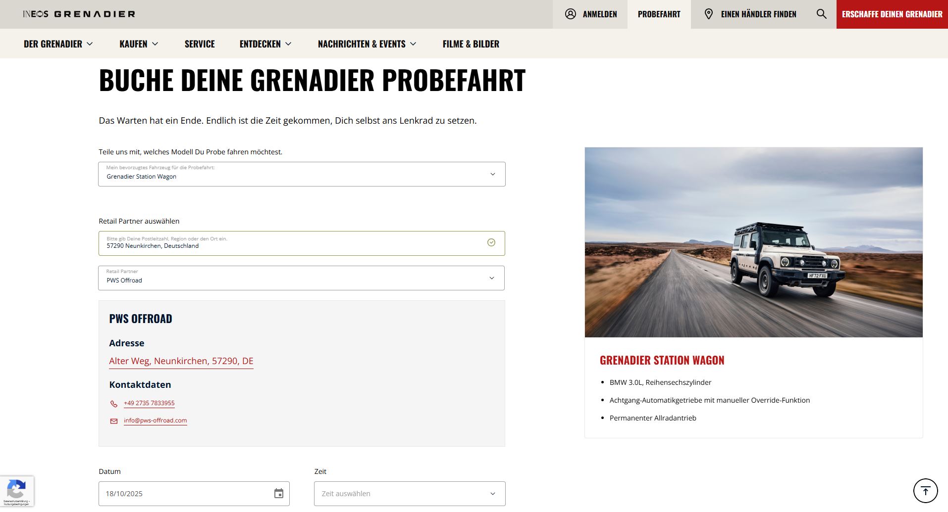 Hier kannst du Deine Testfahrt bei uns vereinbaren: https://ineosgrenadier.com/de/de/probefahrt