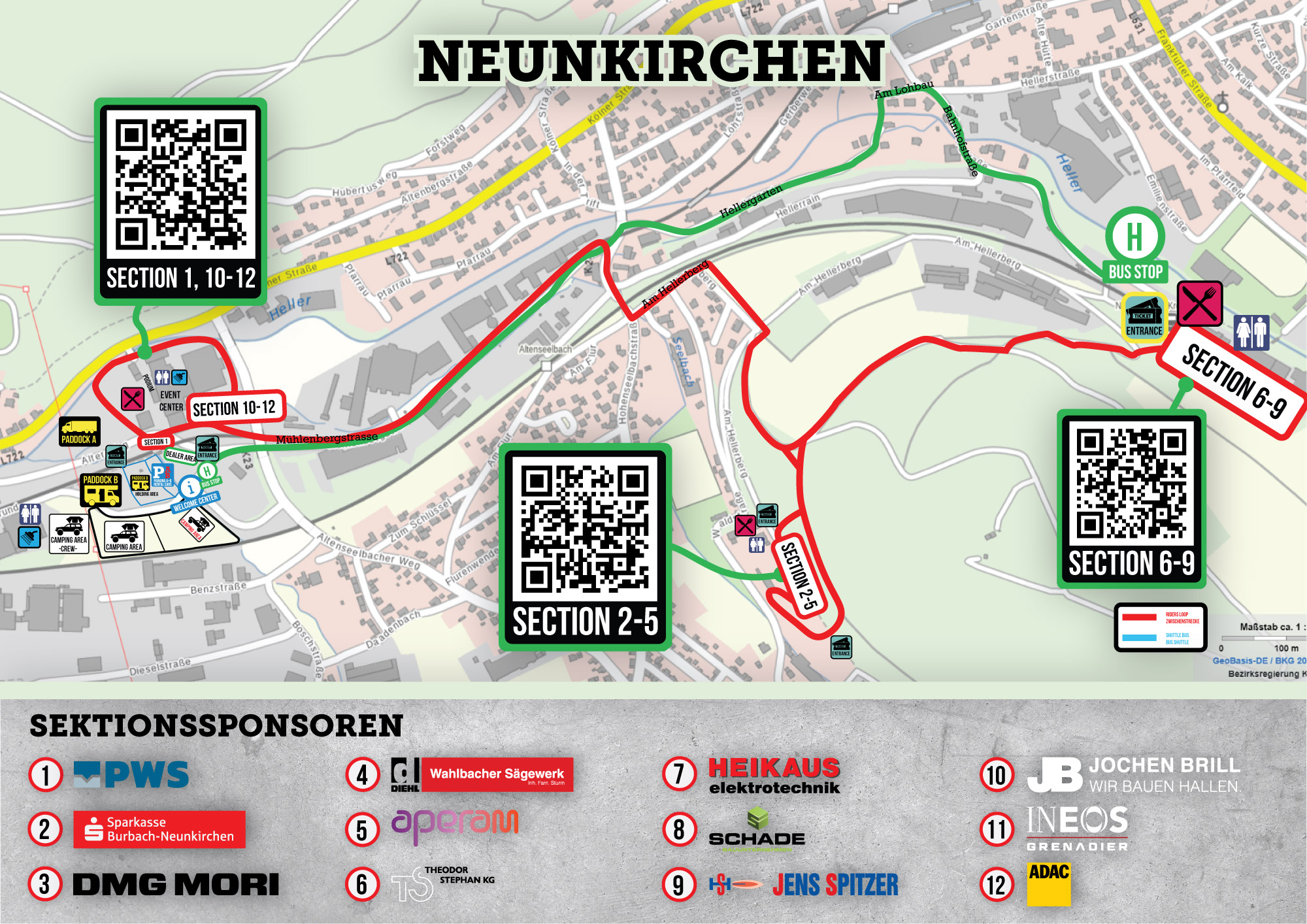 Sektionskarte: Die QR Codes auf der Sektionskarte können mit dem Handy gescannt werden und zeigen per Google Maps direkt den richtigen Standort der Sektions-Gruppe.