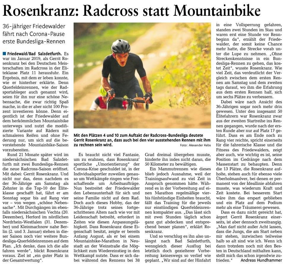 Rosenkranz: Radcross statt Mountainbike